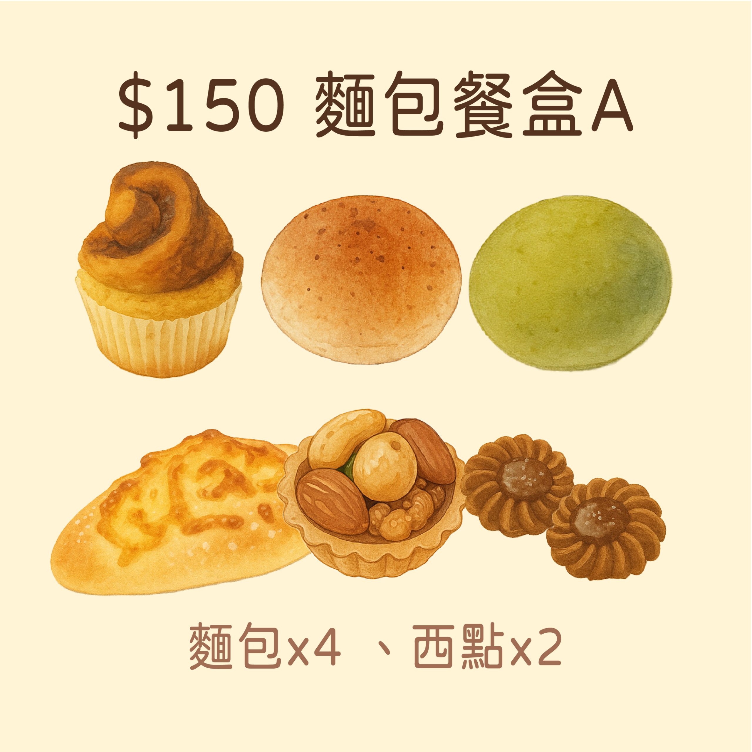 | 固定品項 | 小圓麵包x2、捲類麵包x1、橄欖型餐包x1,請參考每周麵包口味表 |